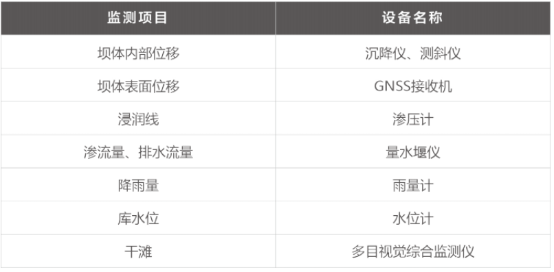 根据国家有关规定以及相关要求,我方可提供的监测内容高于国家规定,包括:浸润线、渗透水量、排水流量、泵流量、库水位、降水量、干滩(包括干滩长度、滩顶高程、干滩坡度)、排水井前水区澄清距离、坝体表面位移(水平位移和竖向位移)、坝体内部位移(内部变形和竖向位移)、岸坡位移、环境水质、视频监控。