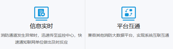 利用加密算法保证传输数据的安全性,为消防部门、消防单位用户设定数据访问权限,提供相应的信息服务;消防通道发生异常时,迅速传至监控中心,快速通知联网单位做出及时反应;兼容其他消防大数据平台,实现系统互联互通。
