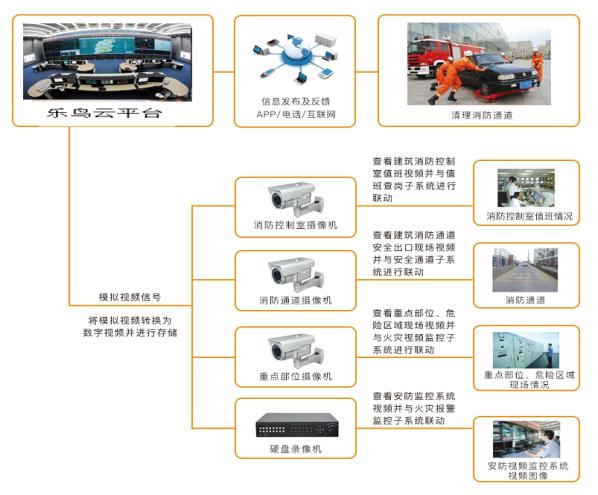 视频采集装置实时监测消防通道重点部位状态,发现异常时将报警信息通过云平台实时传输至数据中心,系统通过智能研判,将报警信息发送给相关责任人,以便及时响应和处理。视频采集装置作为城市消防远程监控系统中的监控、传输装置,用于监控联网单位消防通道的情况,用户可实时调取视频查看,发生堵塞时,将报警信息及时上传至数据中心,从而使数据采集、分析、处理实现自动化,有效提高信息采集的准确性、实时性。