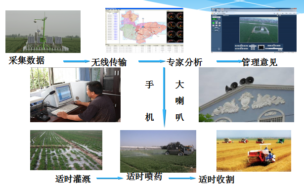 该系统主要包含以下几个子系统:墒情监测系统、苗情监测系统、病虫情监测系统、灾情监测系统、大田监测预警系统、专家系统。