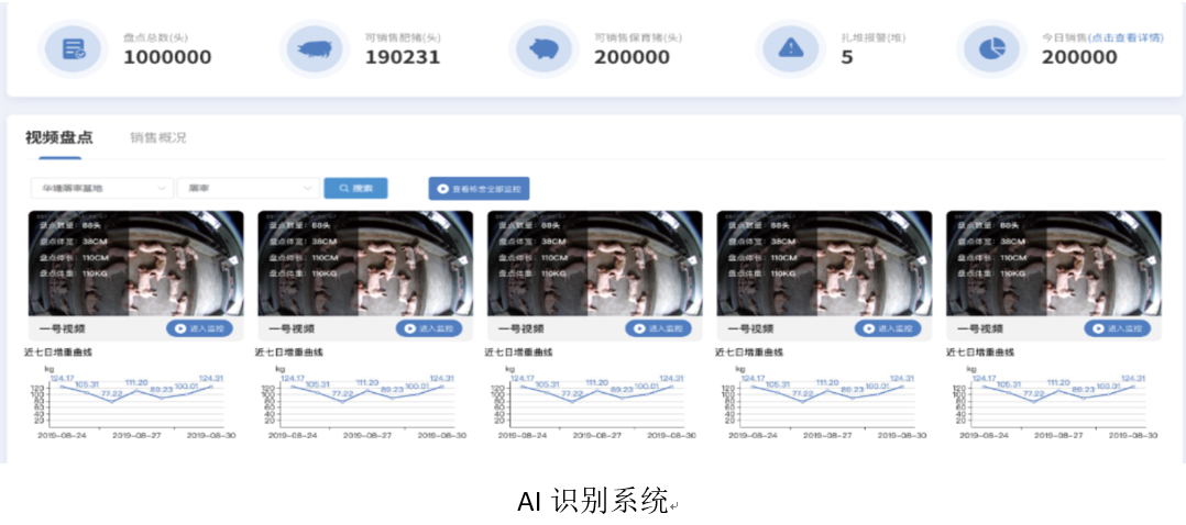 实现对人员、车辆、物料的全过程监管,对外来人员实时进行后台记录及报警提示,保证进入生产区的人员、物料、车辆的安全;此外通过AI技术还可实现对猪的体重监测,统计出其生长的状态信息及体重变化曲线。