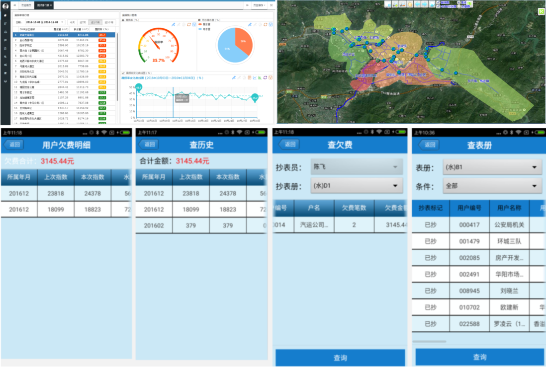 智慧抄表包含智能抄表、远传表智能阀控管理、大表实时监控、分区计量系统等功能。达到效果:提高抄表效率、准确率、回收率、杜绝估抄、错抄、管人管表、定位漏损、减少漏损。