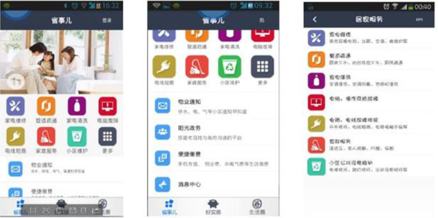 用户通过便民生活平台可实时接收物业通知,进行社区内相关设备报修、搬家服务、便捷缴费等功能;还可一键搜索社区周边美食、娱乐、银行、医药等场所;物业也可通过对云端管理平台实现对社区内物业管理、消息推送等功能。