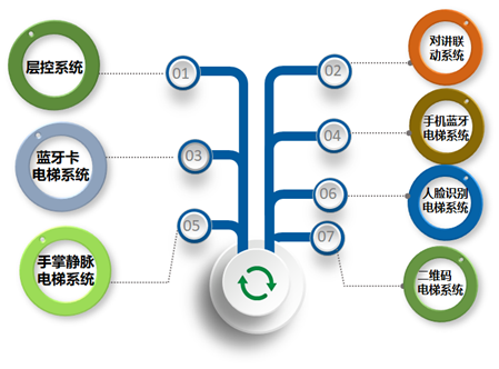 梯控系统包含层控系统、蓝牙卡电梯系统、手掌静脉电梯系统、对讲联动系统、手机蓝牙电梯系统、人脸识别电梯系统、二维码电梯系统,多种电梯系统适应不同任用人群和应用场景。
